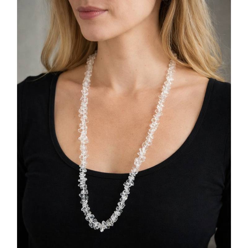 Sautoir cristal von roche 40 cm. Traditionnellement associé à la purification und la clarté mentale.