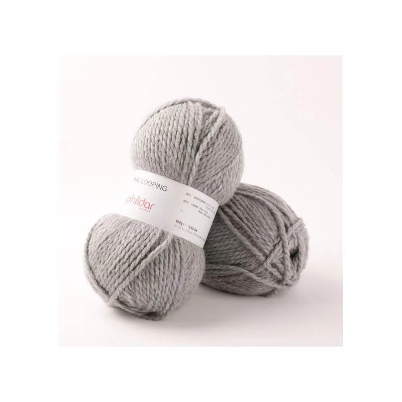 80% Acryl, 20% Wolle. Texture bouclée coloris flanelle. 100g/163m, Nadeln 5.5-6mm. Waschbar à 30°C.