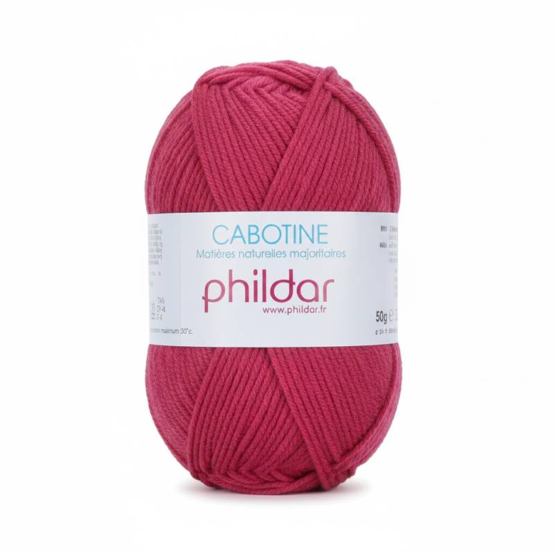 Fil Cabotine Phildar cerise 55% coton 45% acrylique 50g/124m. Couleur éclatante été, aiguilles 3.5mm,